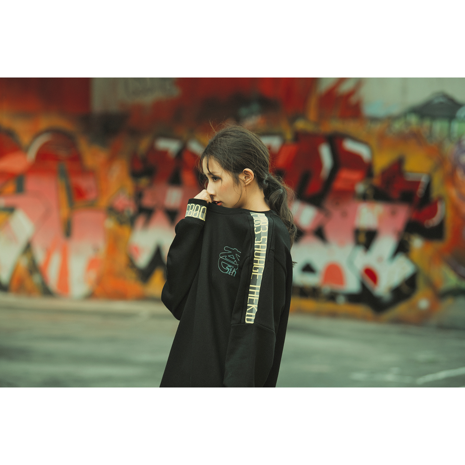落肩與腰部螺紋採循環針織字體呈現精緻氛圍。