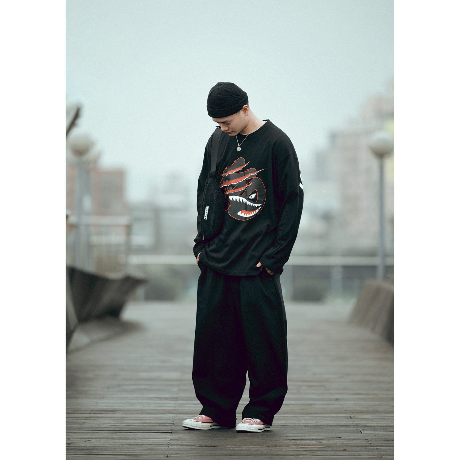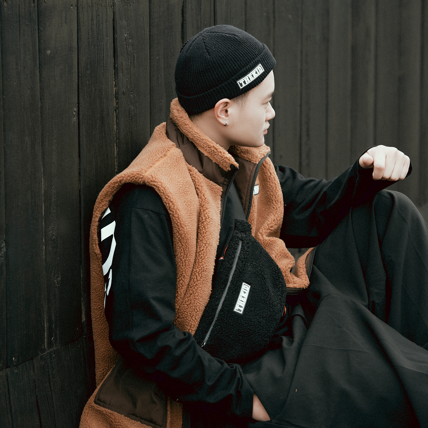 秋冬特選具有良好觸感與保暖性的羊羔絨抓毛材質,設計小型腰包樣式,無論男女都十分實用好搭,附上品牌膠標。