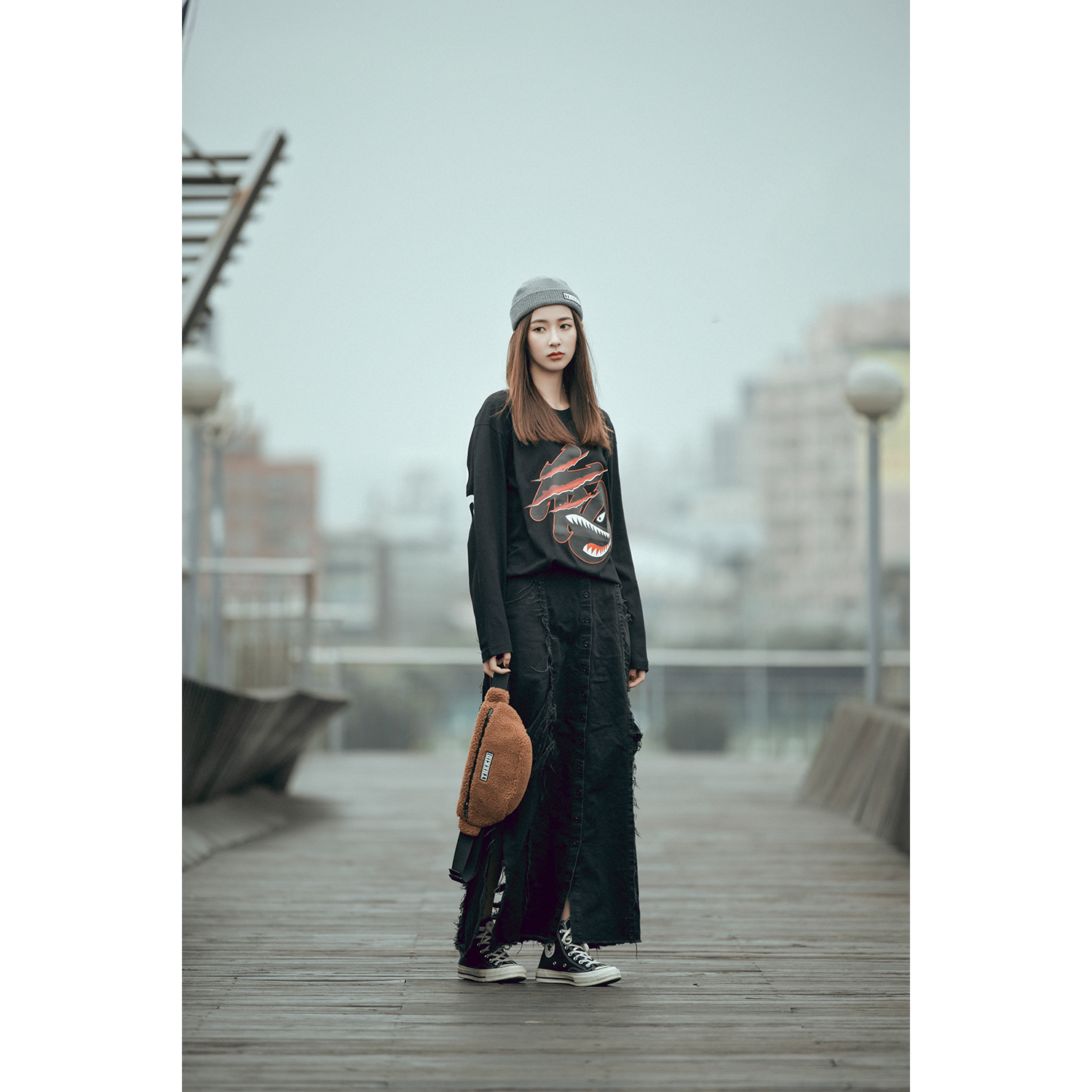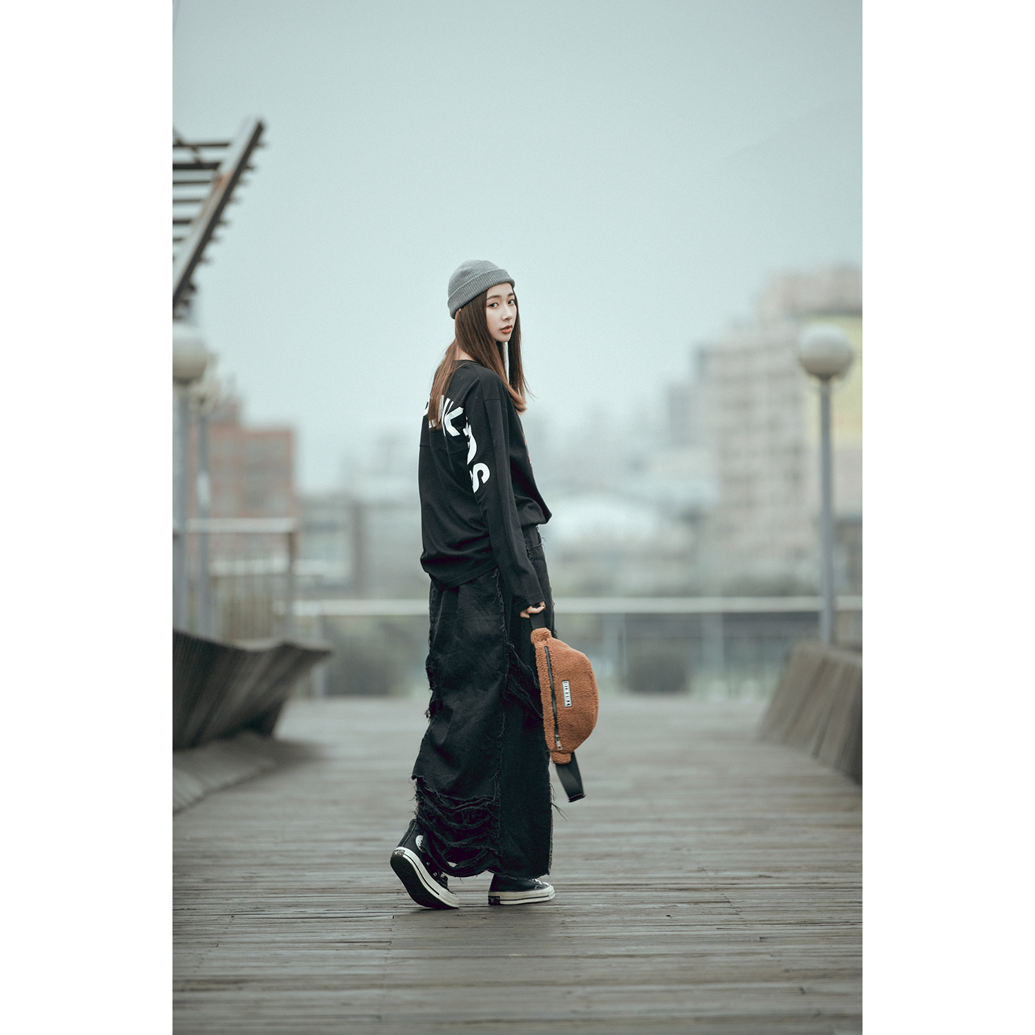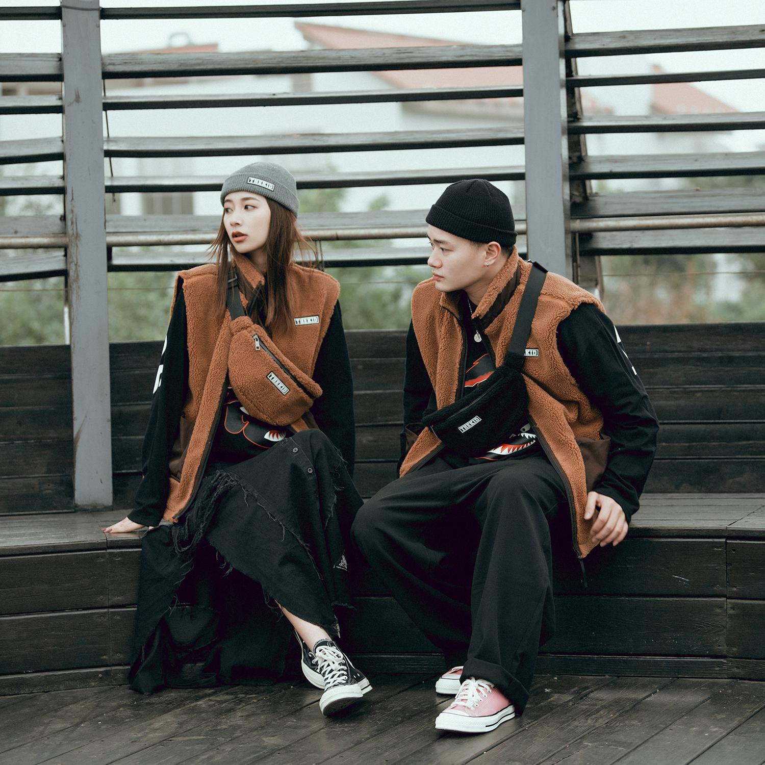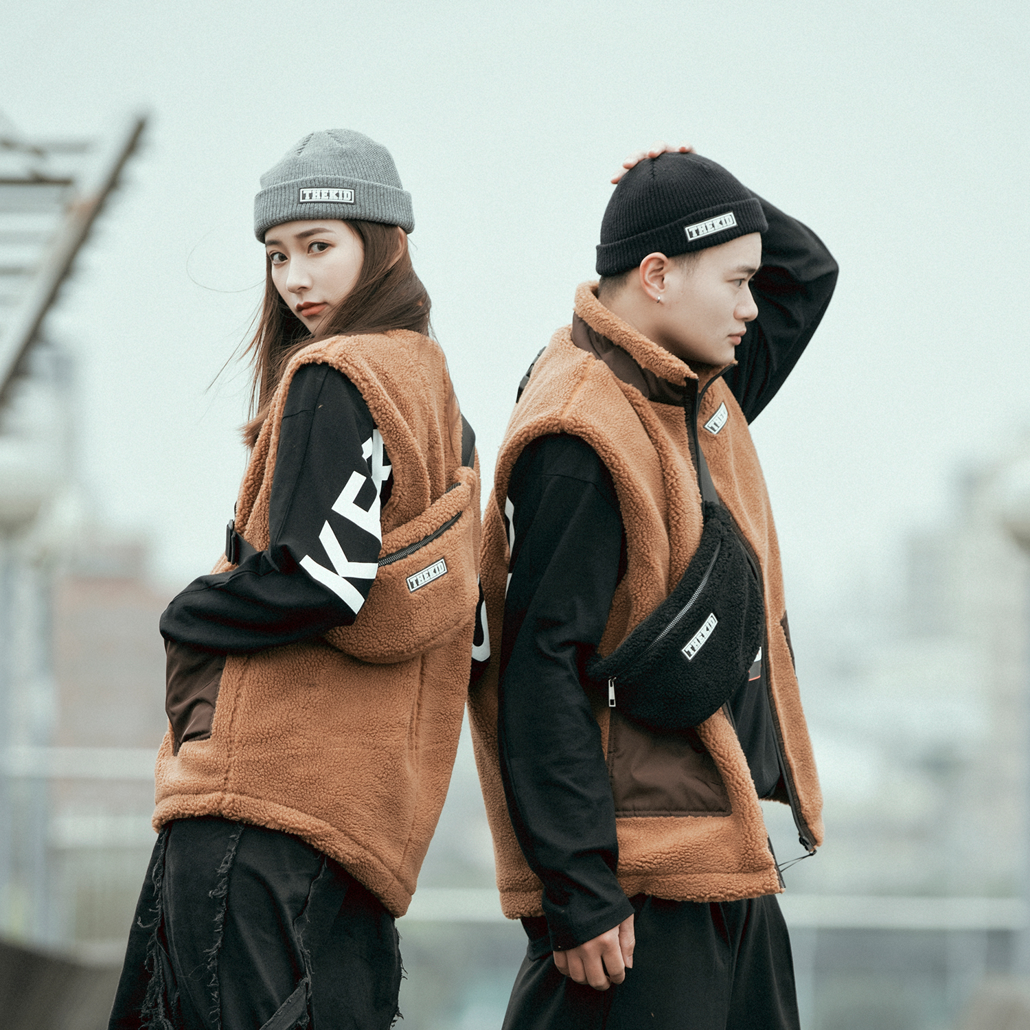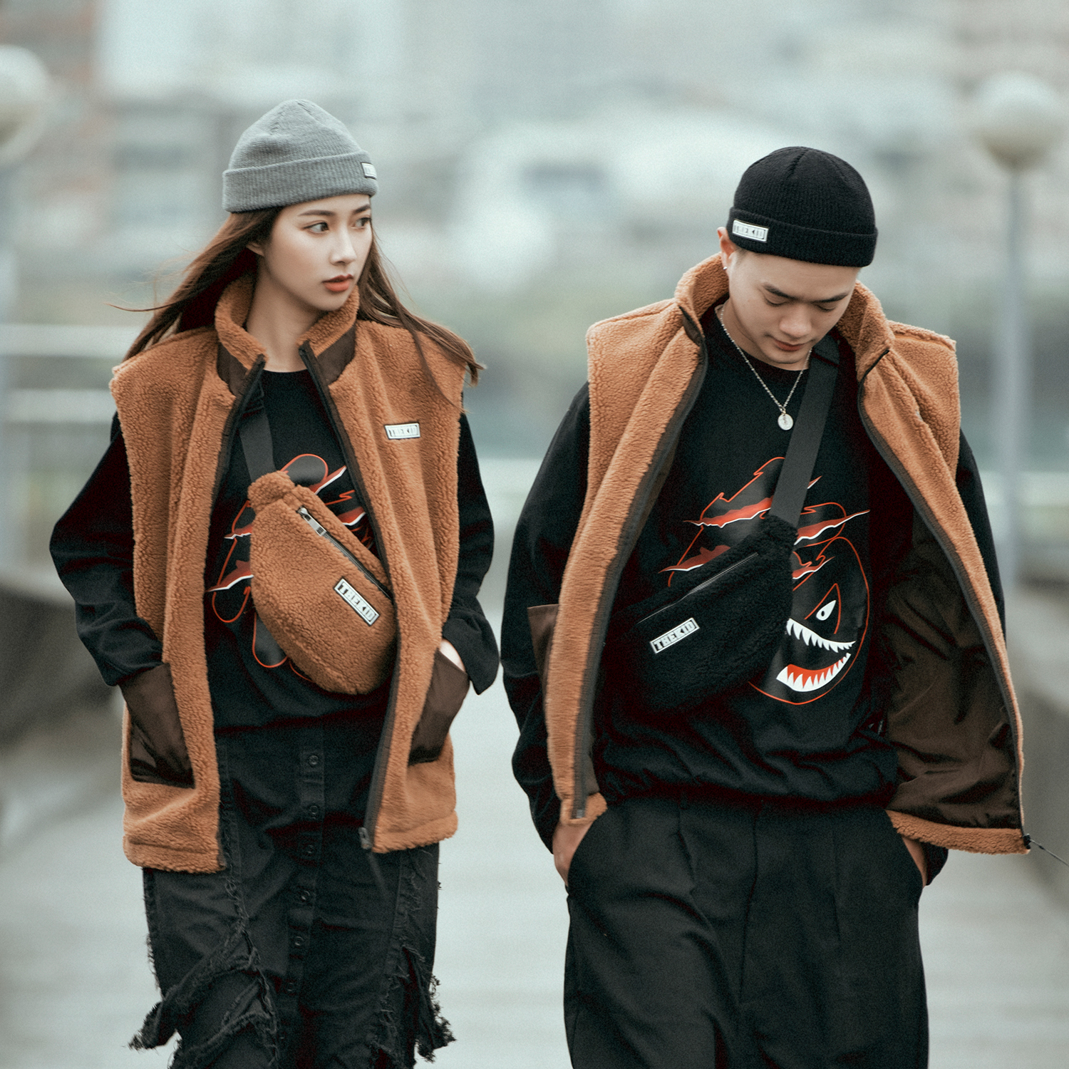 秋冬特選具有良好觸感與保暖性的羊羔絨抓毛材質,設計小型腰包樣式,無論男女都十分實用好搭,附上品牌膠標。