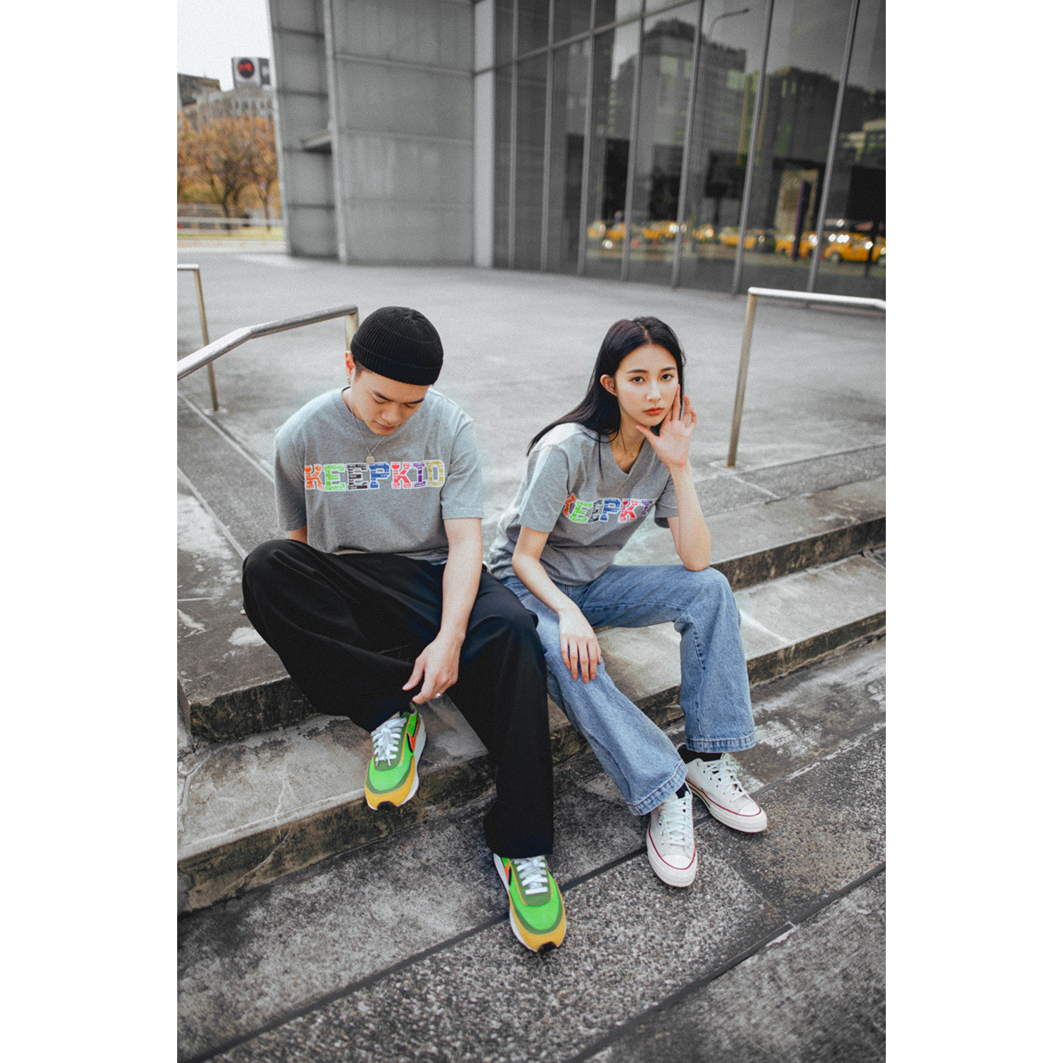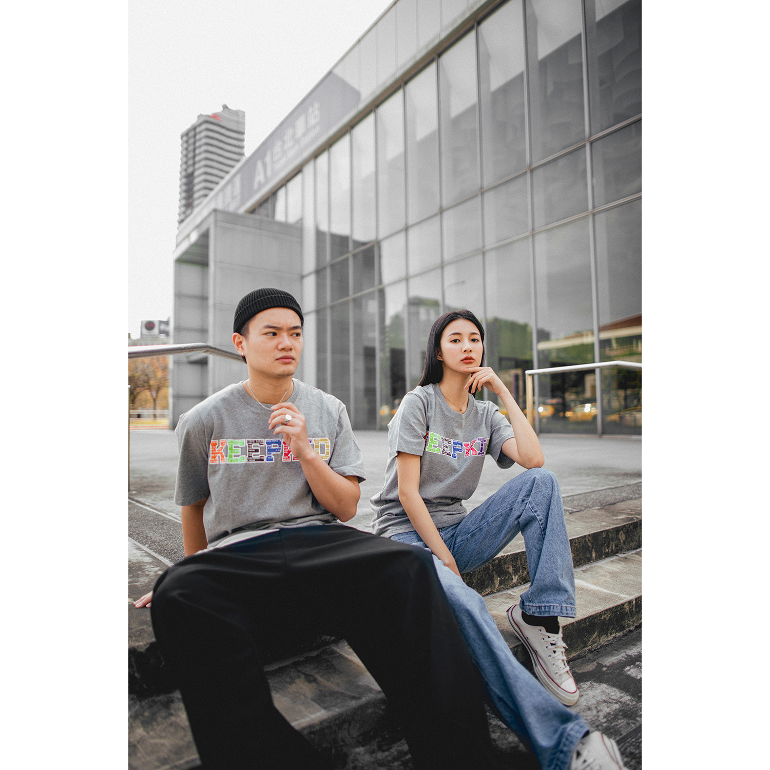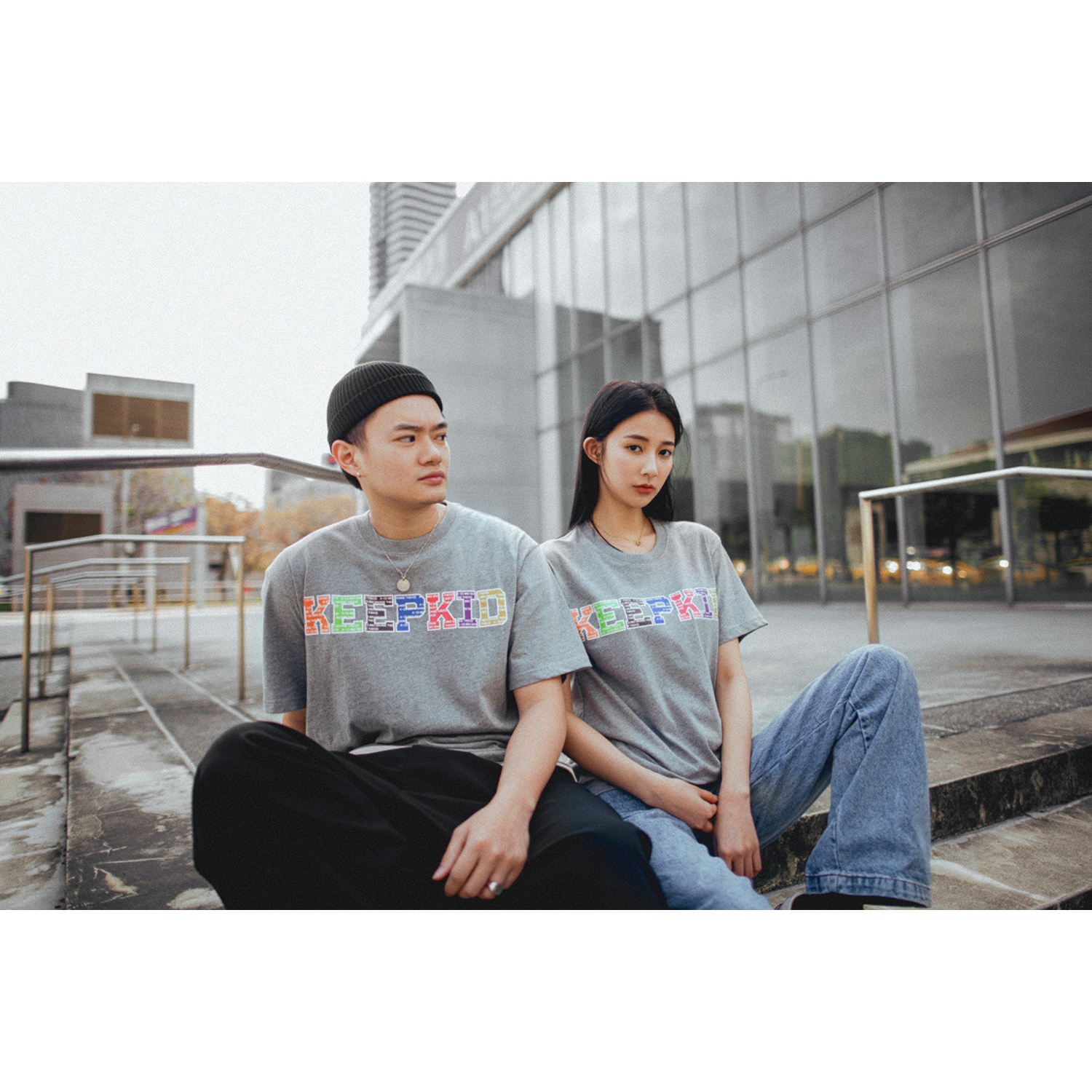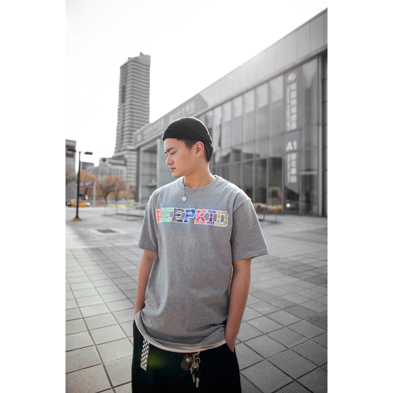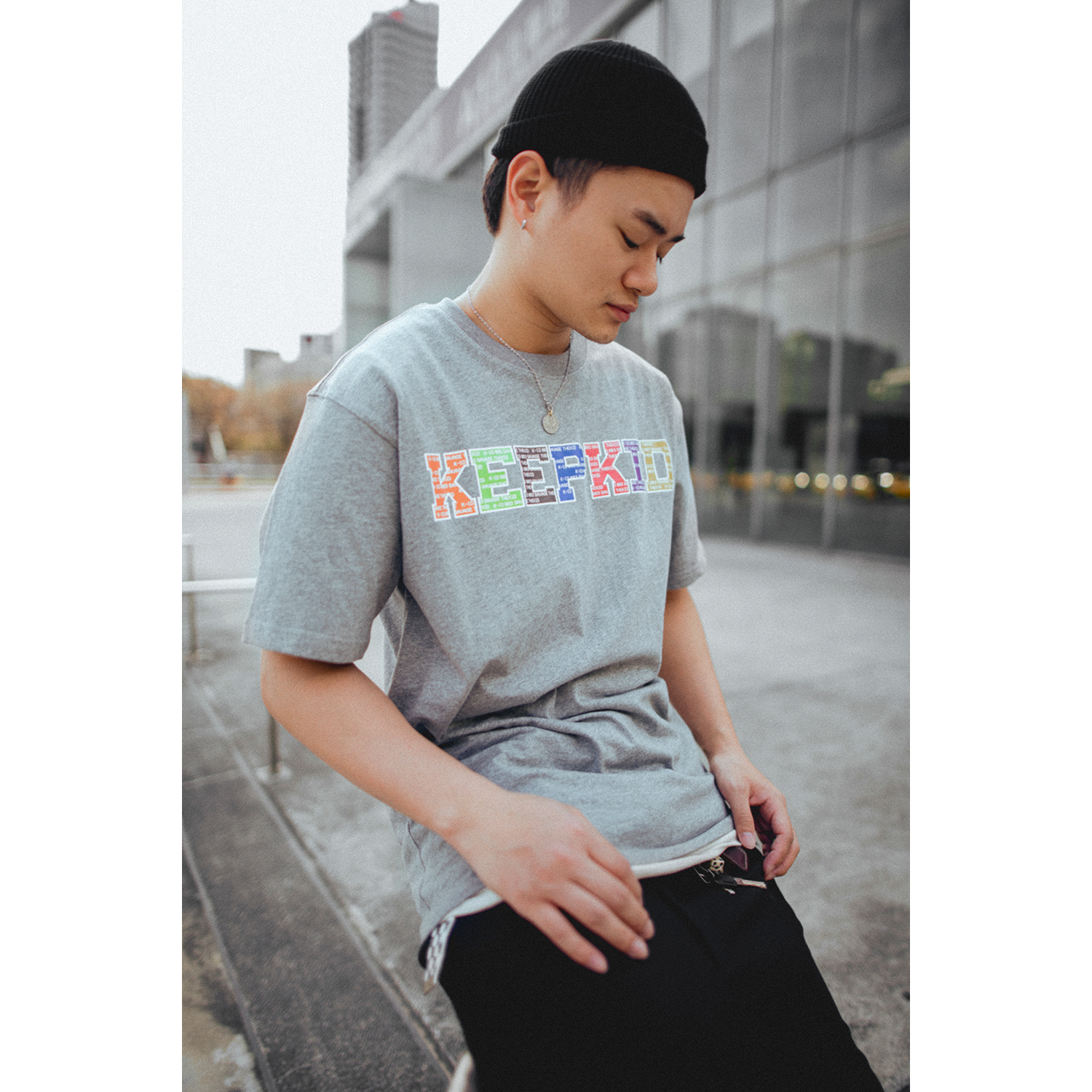 適合亞洲身型衣板短T,圖案設計俐落字體KEEPKID,搭配七種配色,呈現品牌多樣性氛圍