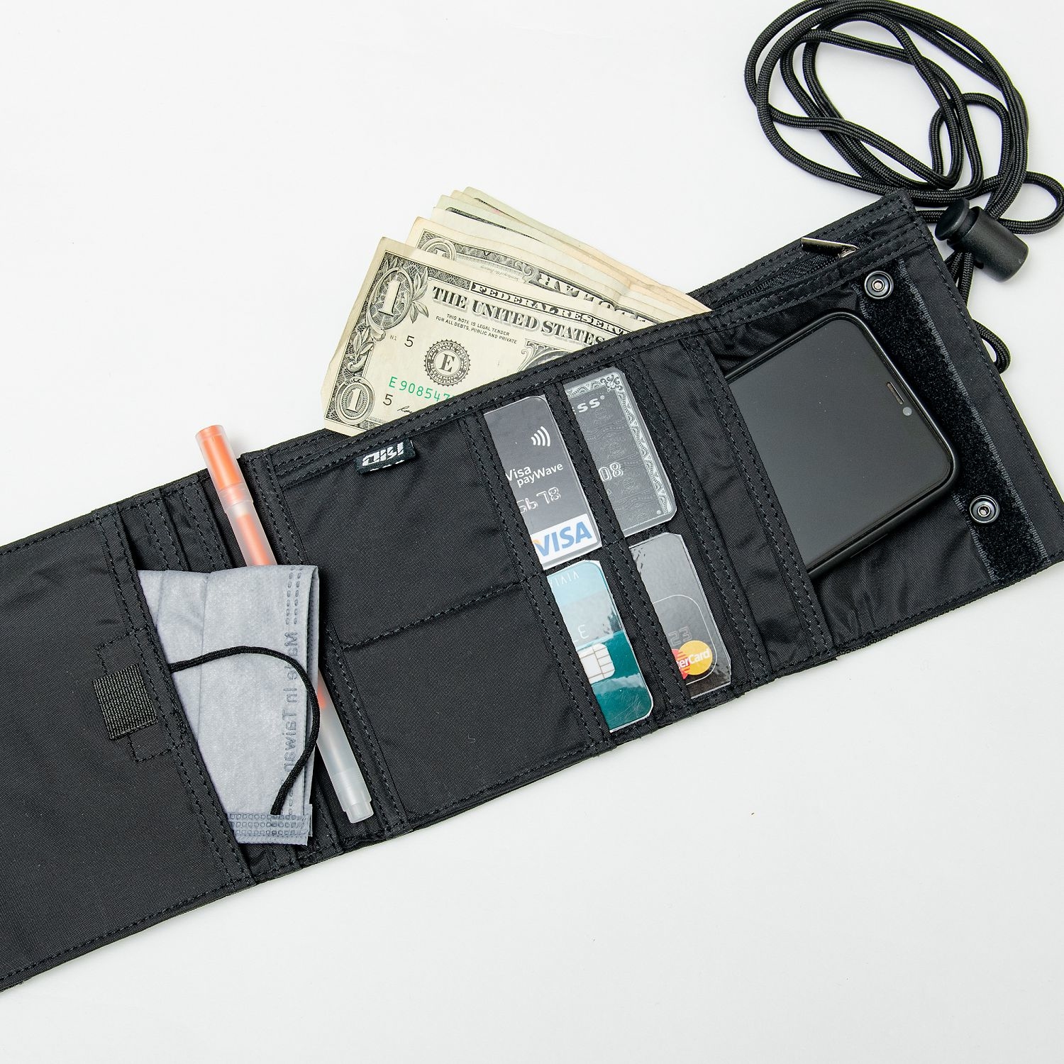 考量日常使用,將錢包內裡夾層與斜背包相結合,背帶插扣取下後即是完整的三折錢包