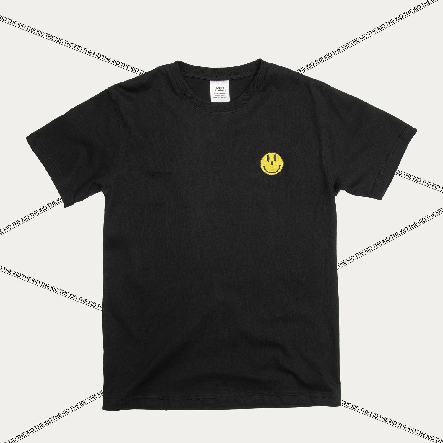 KID ® 黃色刺繡笑臉短T 黑
