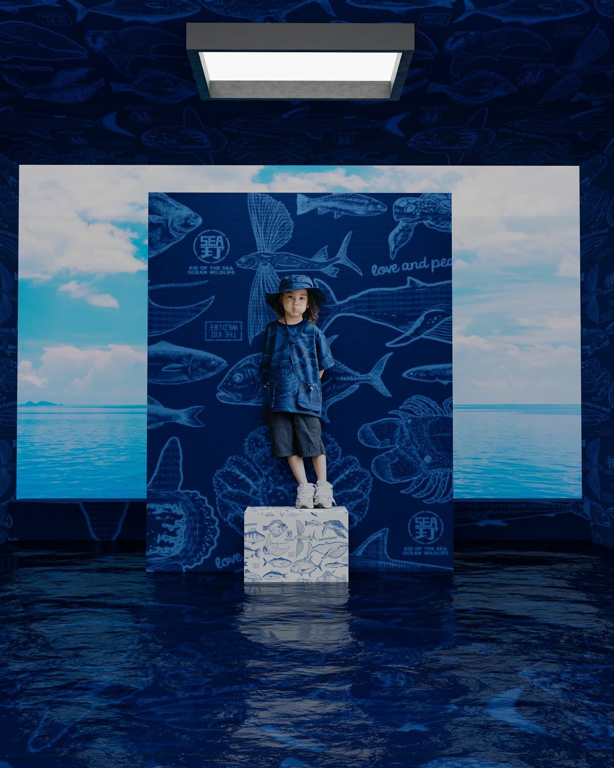KID ® 海洋滿版系列 漁夫帽 滿版藍