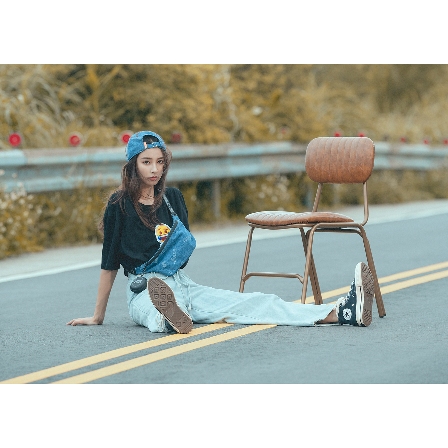 透過雷射燒出牛仔深淺紋路的特殊質感,並於拉鍊頭處使用笑臉軟膠點綴。