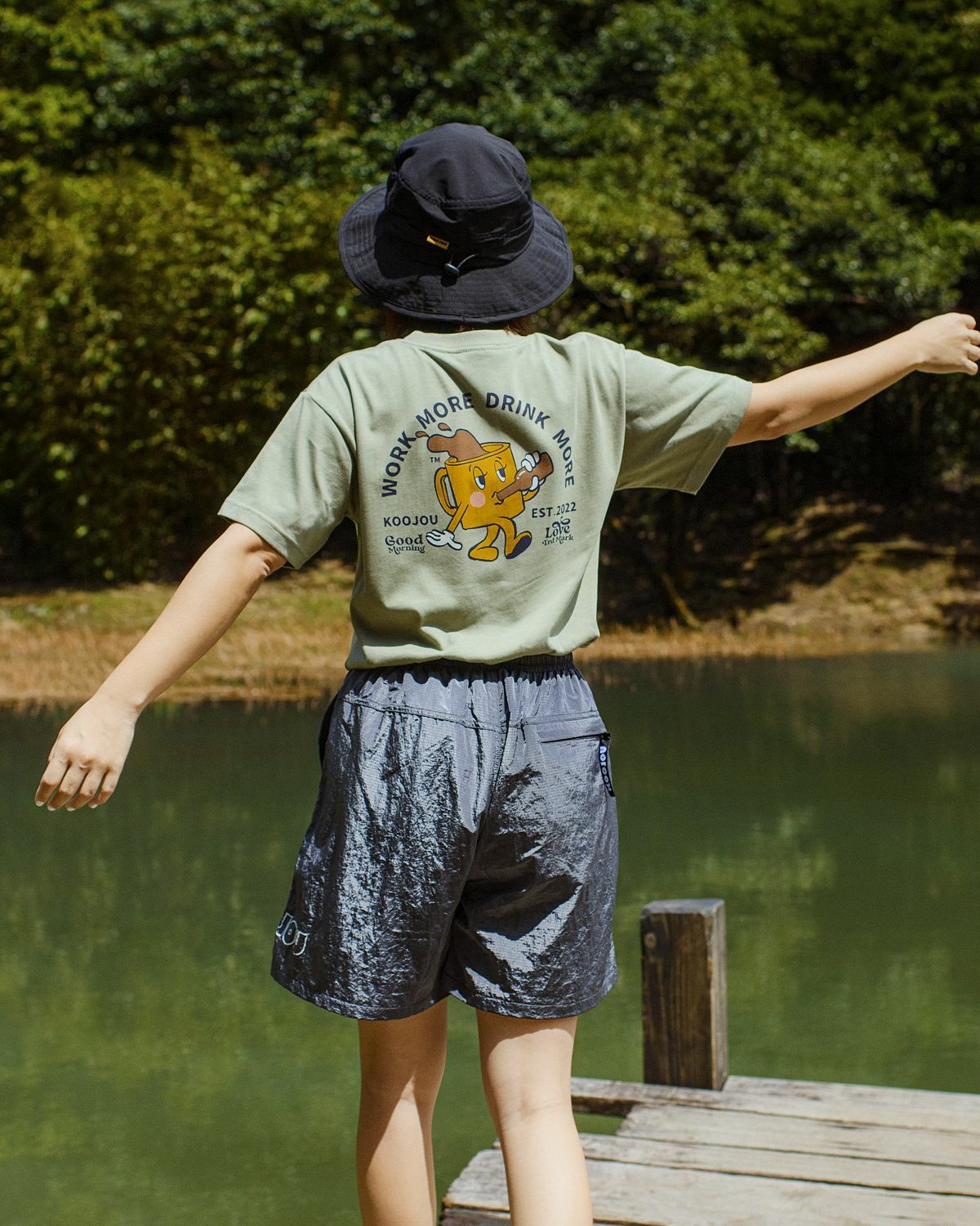 KID ® KOOJOU 早安系列 咖啡人喝啤酒短T 綠